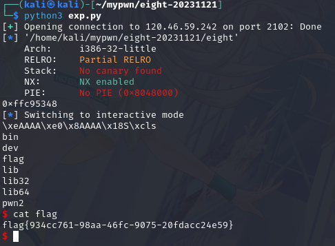 通过ROPgadget 得到 leave ret; 0x0804858c