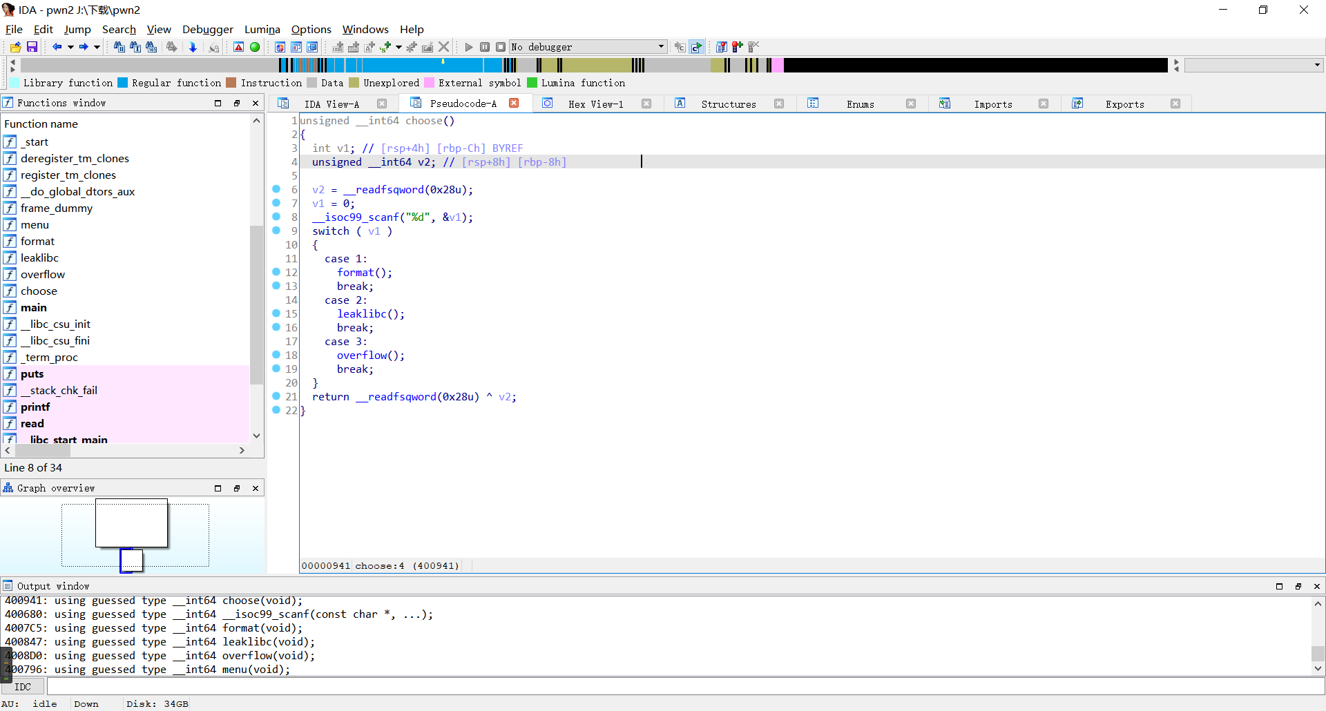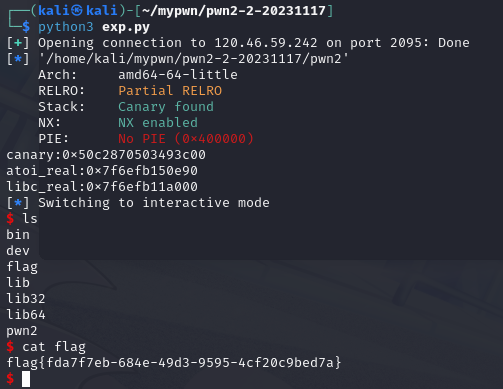基础思路:因为程序是死循环,可以多次选择要进入的函数。选择1泄漏canary的值,选择2输出atoi函数的真实地址(不要问我为什么不输出其他更常用的函数,问就是程序的无中生有调用),选择3使用经典retlibc3。