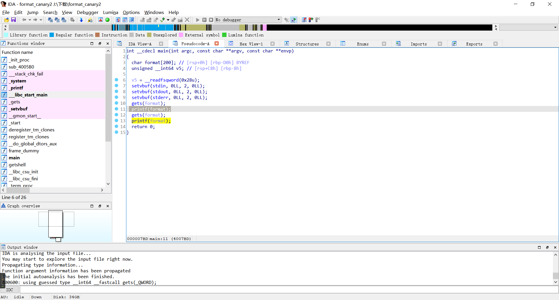 需要学习前置技能canary泄漏一之形+retlibc3+字符串格式漏洞
