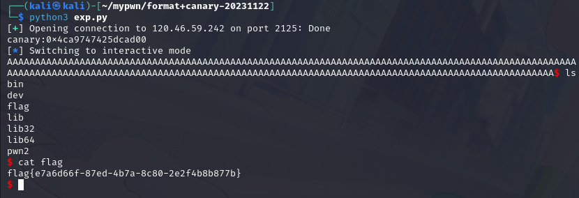 两个字符串格式化漏洞,但是我们注意到字符数组format很长,使用老方法多%p泄漏已经过时,这次试试gdb调试寻找canary的偏移。