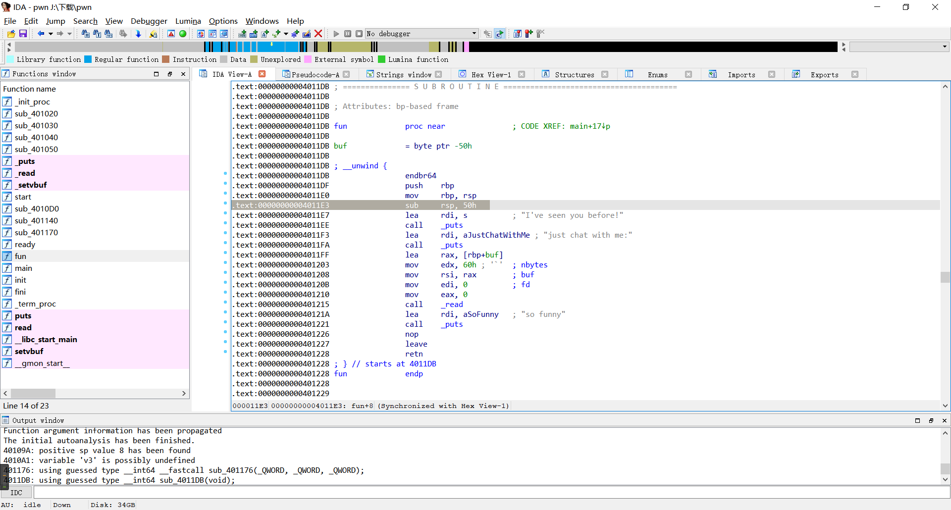 fun的地址我们选取0x4011E3,主要是为了防止前面两条汇编指令影响栈的位置。