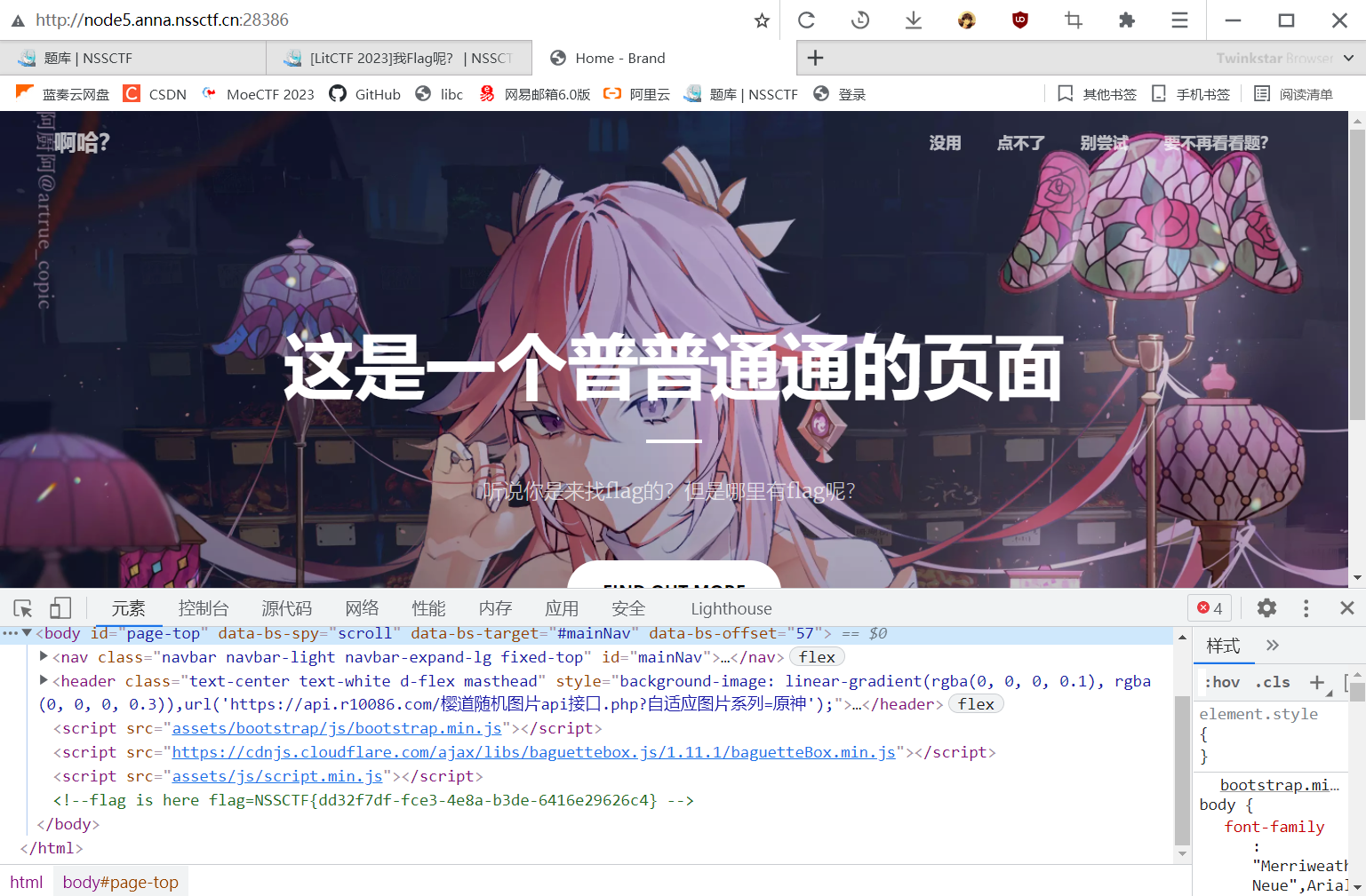一、Baby–[LitCTF 2023]我Flag呢?