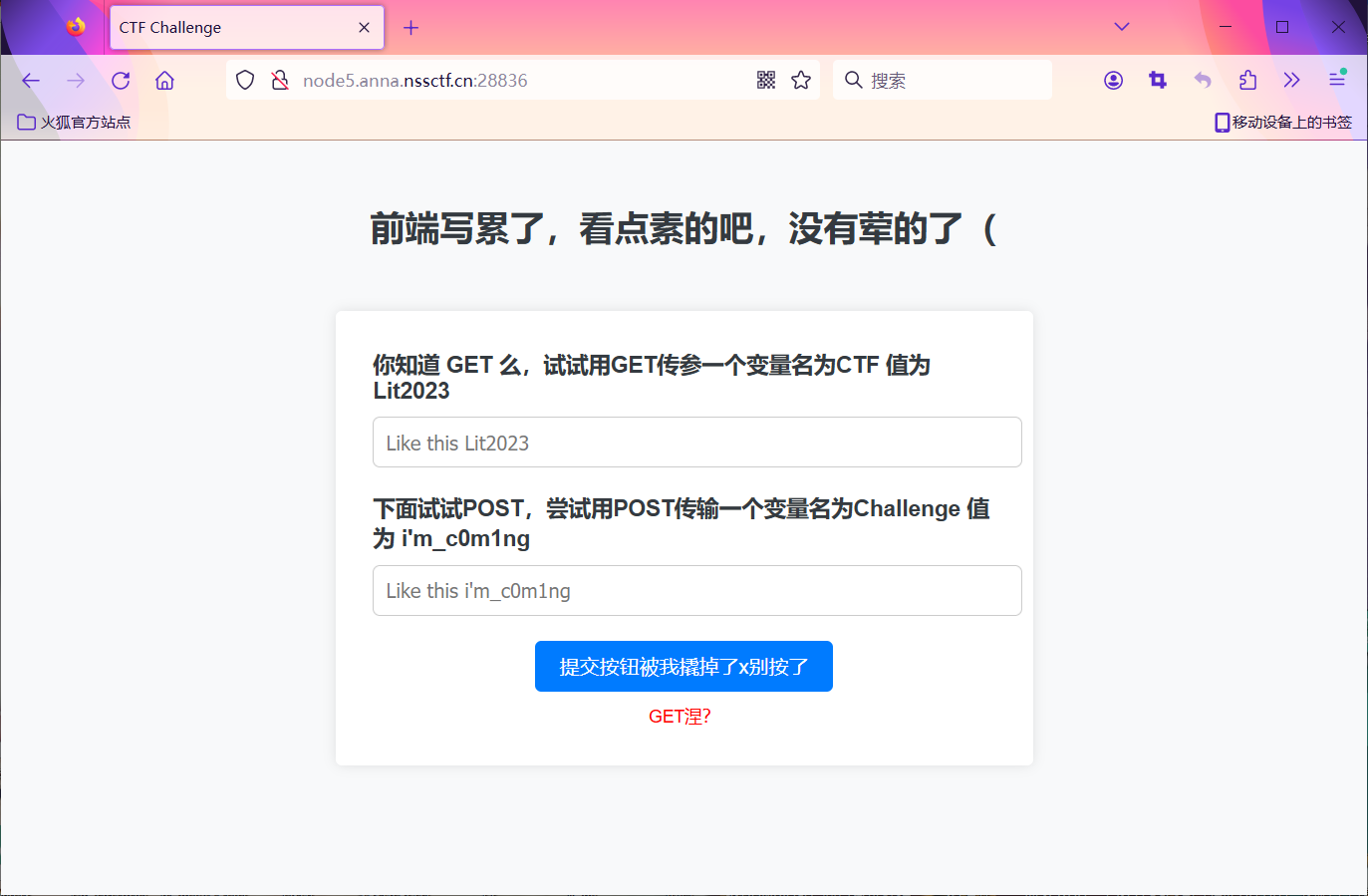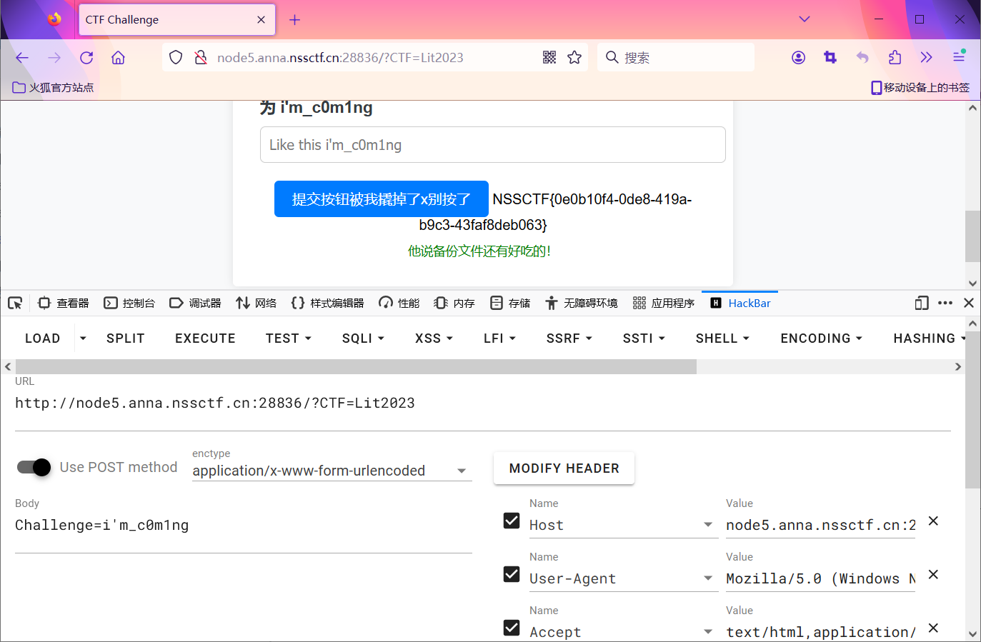 提交按钮无法使用,我们使用hackbar提交数据: