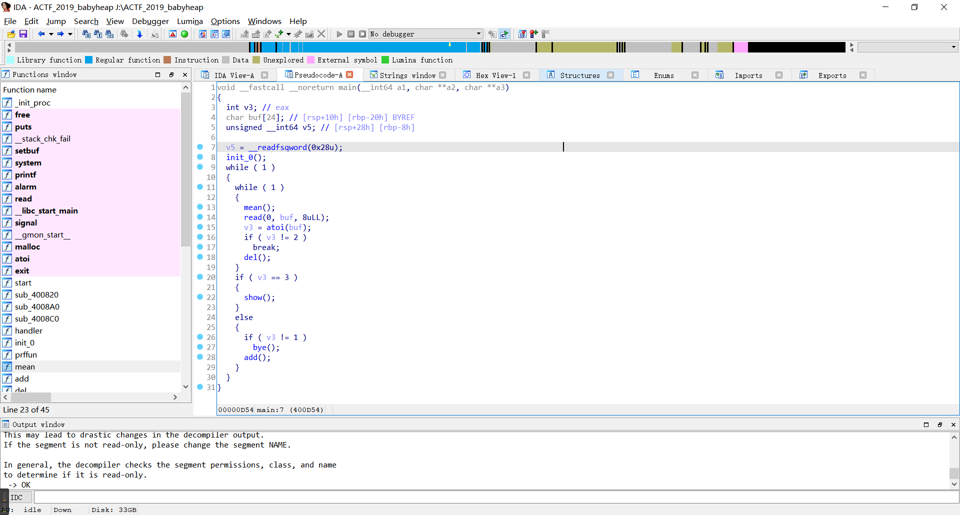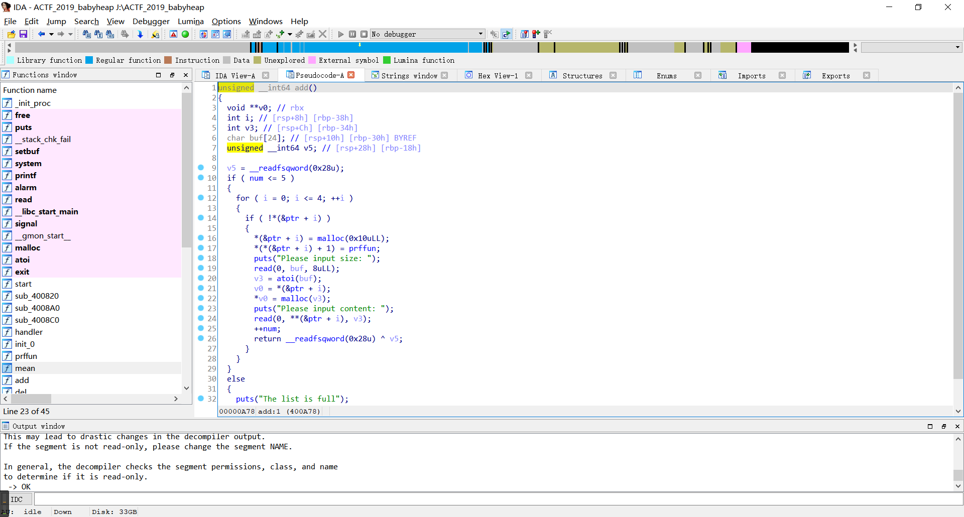 三、Easy–ACTF_2019_babyheap–UAF