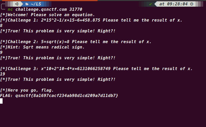 题目只提供了IP地址和端口号,连上去是三道数学题。