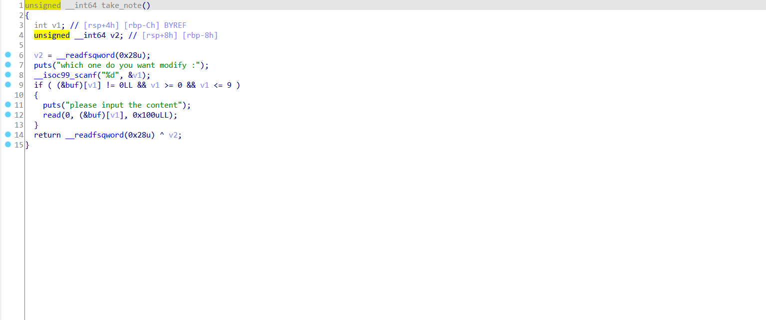 这个函数存在唯一漏洞堆溢出。程序本身支持增查删改。